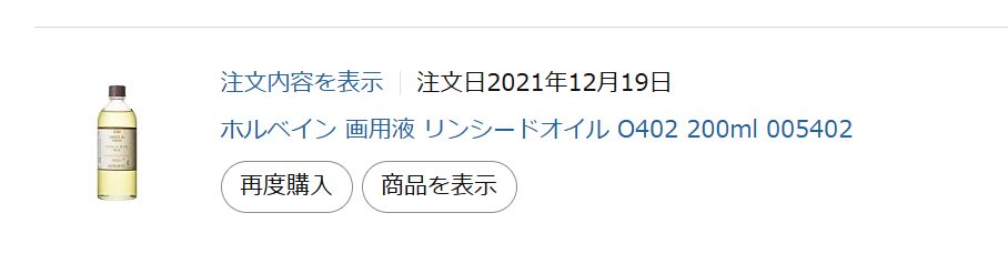 (私は大きな絵を描かないのでちまちまリンシードを使います。それにしてもこれだけ長い期間使えたことにびっくりしながら、Amazonの注文履歴から再度購入をポチっとしました)